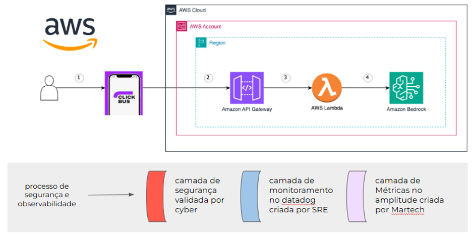 A equipe de cientistas de dados da ClickBus iniciou o desenvolvimento do BusBrain utilizando o Amazon Bedrock como a espinha dorsal da solução. O Amazon Bedrock ofereceu exatamente o que precisavam: acesso a modelos de linguagem de ponta, combinados com a segurança robusta e a escalabilidade inerente da AWS.