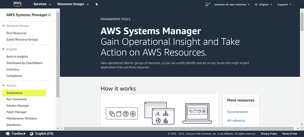 - AWS Systems Manager documents – Este blog usa dois documentos de automação do AWS Systems Manager. Para obter detalhes sobre os documentos do AWS System Manager, consulte o texto Writing your own AWS Systems Manager documents no AWS Management Tools Blog.