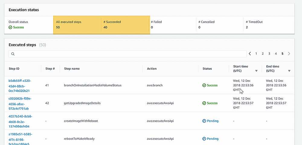 Não é necessário que a automação execute todas as etapas. As etapas são condicionais com base no comportamento da automação e da instância. Assim, o AWS Systems Manager pode pular algumas etapas que não são necessárias.