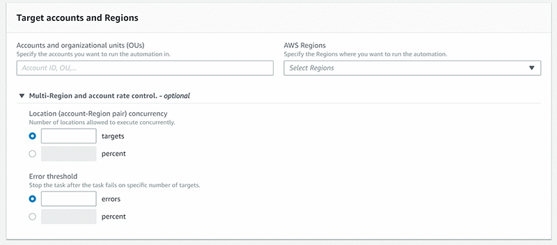 Aqui, você pode especificar várias regiões da AWS nas quais deseja executar a automação.