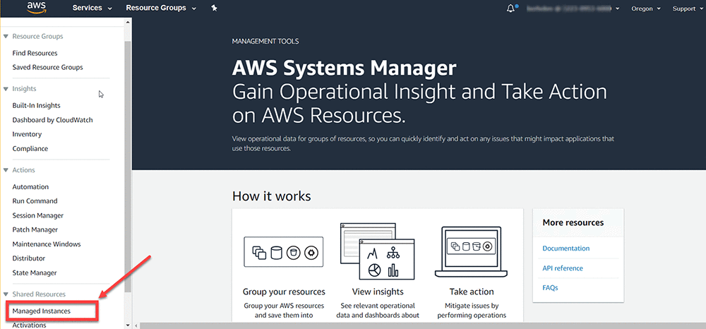 Como você pode ver a seguir, a instância agora aparece como uma instância gerenciada (o que significa que você pode executar comandos contra ela).