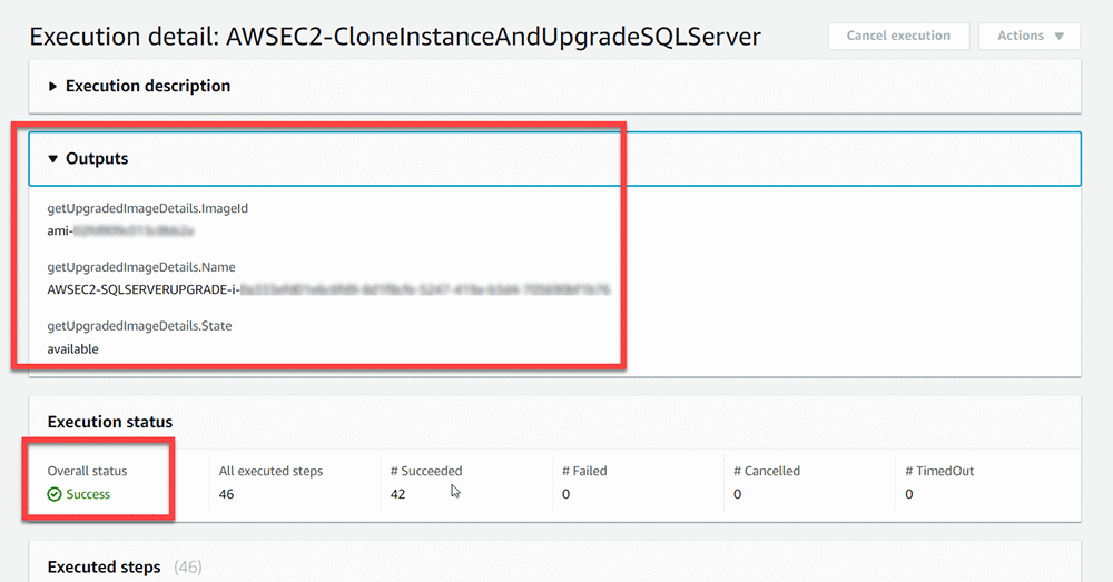 Agora você trabalhou com êxito no documento de automação AWSEC2-CloneInstanceAndUpgradeSQLServer no AWS Systems Manager. Espero que este seja um processo informativo e o tenha ajudado em seu processo de atualização.